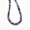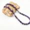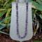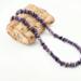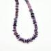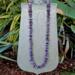 This 24” boho-chic necklace features large natural charoite chip beads in rich shades of violet and lavender. Each bead has its own swirling patterns and textures. Tiny black glass beads add contrast and highlight the stone’s natural beauty.